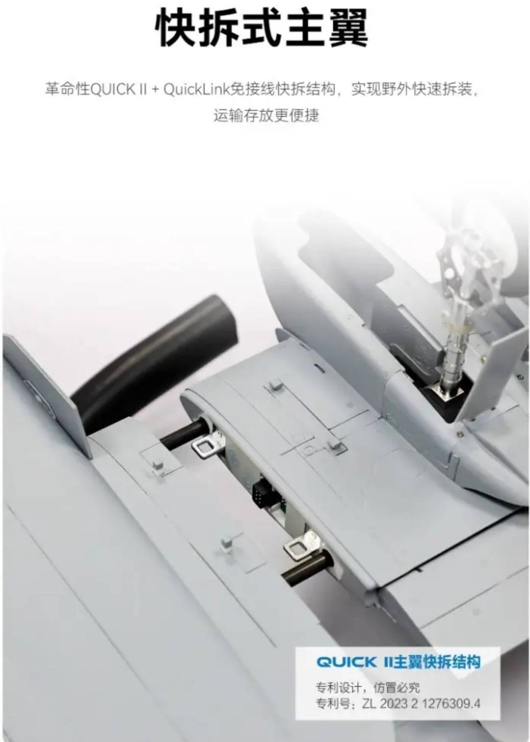 1. 主翼使用QUICK快拆2 免螺絲方便快速安裝翅膀,好運送