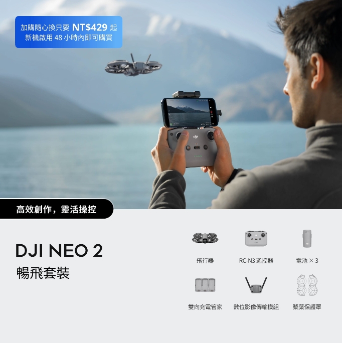 多種飛行模式(如環繞、上升、跟拍等)讓影片創作更簡單。