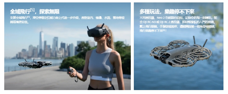 除了手機 App 控制,也支援遙控器、體感控制器(Motion Controller)、FPV 頭盔視角(如搭配 Goggles)等進階方式。